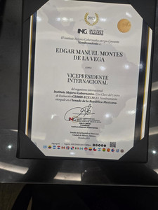 San José de Iturbide, Gto. 05 de diciembre de 2025. -El presiente municipal Edgar Manuel Montes de la Vega recibió un reconocimiento como Vicepresidente Internacional del Instituto Mejores Gobernantes y Medalla al Mérito "Ben Lamat" 2025 por el programa “Adopta una Comunidad”, en la Cumbre Mundial de Municipalistas 2025, la cual se efectuó en el Senado de la República.