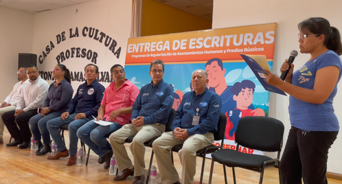 San Diego de la Unión, Guanajuato a 5 de julio de 2024.- En medio de un ambiente festivo en el que participaron diversas autoridades municipales se llevó a cabo la entrega de treinta y cuatro escrituras de predios tanto rústicos como de asentamientos humanos en el municipio.